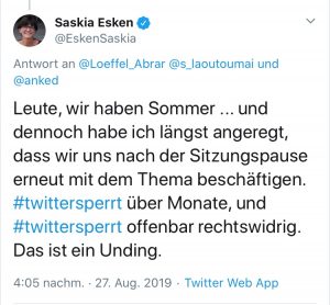 #Twittersperrt – Prozessuales Vorgehen gegen Account-Sperren