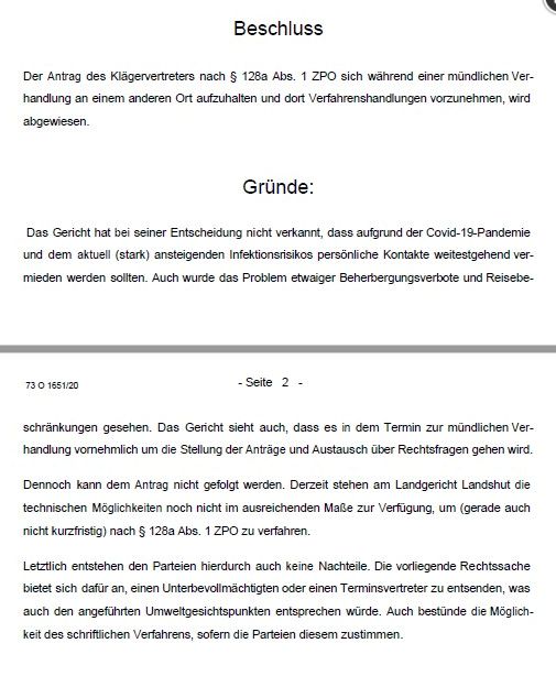 Die Justiz ist als tragende Säule des Staates systemrelevant. Im Zivilprozessrecht wird die Bearbeitung von dringenden Angelegenheiten und damit auch Eilverfahren vom weiterhin geltenden Justizgewährungsanspruch gemäß Art.19 Abs.4 Grundgesetz umfasst (Mantz, Die Dringlichkeit im Eilverfahren in Zeiten der Pandemie, WRP 2020, 533). Gut zu wissen, dass der Zugang zum Recht in dringenden Fällen gewährleistet bleibt, wie der Richterbund bekräftigt. Die Corona-Krise ist einschneidend, sie ist aber kein Grund, einen Stillstand der Rechtspflege nach § 245 Zivilprozessordnung (ZPO) herbeizuführen, so der Kölner Professor Dr. Prütting im Anwaltsblatt. Ein Stillstand der Rechtspflege wäre aus Gründen der Rechtssicherheit ein Albtraum (Windau in zpoblog). Unter anderem einstweilige Verfügungsanträge müssen in der Krise möglich bleiben und selbst Juristen, die eine Schließung der Gerichte fordern, plädieren für einen „Eildienst“ für einstweilige Verfügungsverfahren (Huff in Legal Tribune Online). Eilverfahren, wie sie zum Beispiel im Wettbewerbsrecht praktiziert werden, sind an sich wie für Zeiten von „Lockdowns“ gemacht. Stichwort: Social Distancing. Denn über einen Antrag auf Erlass einer einstweiligen Verfügung wird in der Praxis meist ohne mündliche Verhandlung entschieden. 1. Unlautere Geschäftemacherei mit der Angst vor Covit-19 „Wenn sie sterben, dann spüren sie es, sie sind dabei ganz klar. Es ist, als würden sie ertrinken. Nur langsamer. So, dass sie alles mitbekommen.“ Jeder von uns versucht, sich nicht zu infizieren, doch eine Garantie dafür gibt es nicht. Eine deutlich bessere Überlebenschance haben Sie, wenn Sie Ihr eigenes Sauerstoff Beatmungsgerät besitzen, das Sie notfalls auch mit ins Krankenhaus nehmen können.“ Das ist der Ausschnitt aus einer uns vorliegenden – grob irreführenden und betrügerischen – Werbung. In anderen Fällen wird dafür geworben, dass man sich mit homöopathischen Globuli vor dem neuartigen Coronavirus schützen könne. Die angeblichen Immun-Stärker gegen das Coronavirus, für die im Internet geworben wird, helfen nicht, wie ein Faktencheck zeigt. In den USA wurde sogar im Fernsehen für ein angebliches Anti-Corona-Mittel geworben, was eine Abmahnung des Bundesstaats New York zur Folge hatte (Abmahnschreiben des State of New York Office of the Attorney General hier abrufbar). In Deutschland kann eine irreführende Gesundheitswerbung aufgrund des Gesetzes gegen den unlauteren Wettbewerb (UWG) verboten werden (Laoutoumai, Werbung in Zeiten der Pandemie COVID-19). Denn im Bereich der Gesundheitswerbung gilt das sogenannte Strengeprinzip: Wird in der Werbung auf die Gesundheit Bezug genommen, gelten besonders strenge Anforderungen an die Richtigkeit, Eindeutigkeit und Klarheit der Aussagen, und zwar aufgrund der Bedeutung des Rechtsgutes Gesundheit für die angesprochenen Verkehrskreise sowie aufgrund der hohen Werbewirksamkeit von gesundheitsbezogenen Aussagen. Aus diesem Grunde darf mit gesundheitsfördernden Wirkungen nicht geworben werden, wenn diese wissenschaftlich nicht gesichert sind (Landgericht München I, Urteil vom 25. Juni 2015 – 17 HK O 219/15). Gegen irreführende Werbung können unter anderem Wettbewerber und Verbraucherschützer vorgehen. Die Wettbewerbszentrale hat zwischenzeitlich in mehreren Fällen einstweilige Verfügungen wegen irreführender Werbung mit Corona-Bezug erwirkt (LG Essen, Az.: 43 O 39/20; LG Düsseldorf, Az.: 34 O 26/20, LG Flensburg, Az.: 6 HK O 20/20; LG München I, Az.: 17 HK O 5079/20). Sehenswert hierzu das Zoom-Meeting von Prof. Dr. Thomas Hoeren und Dr. Reiner Münker. 2. Eilbedürftige und dringende Fälle im Zusammenhang mit COVID-19 Soweit bekannt gab es nur ein Gericht in Deutschland, das aufgrund der Corona-Pandemie bilsang einen Stillstand der Rechtspflege annahm. Das Landgericht Osnabrück teilte mit, dass man die Voraussetzungen von § 245 ZPO zumindest für den Zeitraum 23. März bis 20. April 2020 als eingetreten ansehe, „mit der verheerenden Folge, dass die Justiz dort stillgelegt wird“, wie die Rechtsanwaltskammer Düsseldorf schreibt. Unglaublich, aber wahr (Professor Dr. Klindt auf Twitter). Anders als das Landgericht Osnabrück sehen es wohl alle anderen Gerichte in Deutschland, die ihre Kernaufgaben weiter erfüllen. Lesenswert hierzu ein Brief der Direktorin des Amtsgerichts Mettmann: „Natürlich gehen die Ereignisse der letzten Woche nicht spurlos an uns vorüber. Wir alle sind besorgt. […]. Es gibt jedoch einen entscheidenden Unterschied: Anders als […] die vielen Arbeitnehmer, die ihren Arbeitsplatz bereits verloren haben oder um ihn fürchten, die vielen Selbstständigen, die in ihrer wirtschaftlichen Existenz bedroht sind, […] sind wir keinem finanziellen Druck ausgesetzt. Wir wissen das. Allen Entscheidungen, die wir für unser Gericht getroffen haben, um mit den Herausforderungen der Corona-Pandemie umzugehen, lagen und liegen deshalb zwei Ziele zu Grunde, für die sich alle Angehörigen des Amtsgerichts Mettmann mit aller Kraft einsetzen werden: Wir wollen die Erfüllung unserer Kernaufgaben gewährleisten und alles in unserer Macht stehende unternehmen, existenzielle Nöte und Sorgen derjenigen Menschen zu lindern, die mit unserem Gericht in Berührung kommen.“ Dass die Justiz weiterhin „eilbedürftige und dringende Entscheidungen“ treffen wird, wie auch der bayerische Justizminister Georg Eisenreich und der Richterbund betonen, ist richtig und wichtig. Denn ein Vorgehen zum Beispiel gegen irreführende gesundheitsbezogene Werbung ist eilbedürftig, will man Lügnern und Betrügern nicht für längere Zeit Tür und Tor öffnen. Um „skrupellose Geschäftemacher, die mit Angeboten jenseits von Gut und Böse mit der Angst der Bevölkerung spielen“ (Laoutoumai) schnell und effektiv zu stoppen, eignen sich auch und insbesondere einstweilige Verfügungsverfahren, gerade in Zeiten von „Social Distancing“. Das Bundesverfass